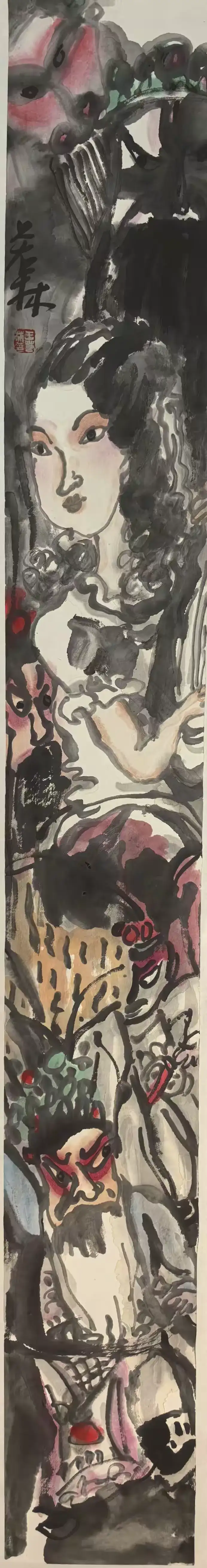 王若林在这批作品里延续了 “水墨为骨” 的基底,但更强化了 “彩为情魂” 的表达: