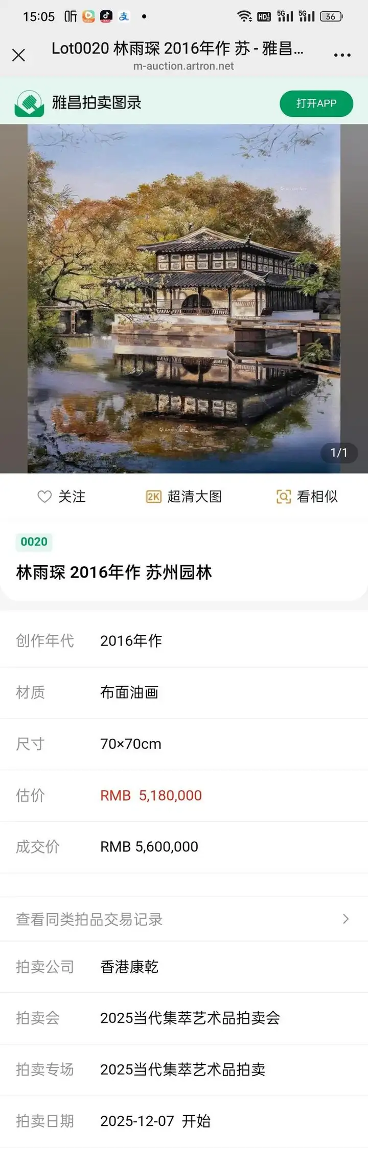 林雨琛的画作一直都是拍卖场上的宠儿。2021年林雨琛的油画作品就受到苏富比拍卖行邀请参拍。2023年林雨琛被苏富比、佳士得、嘉德、保利四大拍卖行正式签约。在2024年入选2024福布斯中国当代艺术家影响力榜单。