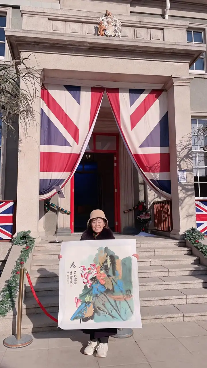 在英国大使馆的文化交流现场,中国当代艺术家叶丽霞携其荷花作品而来:笔墨间红荷明艳、墨韵清雅,将中式花鸟的意趣与禅意,揉进英伦建筑的肌理里,以丹青为桥,织就中英美学的温柔共鸣。